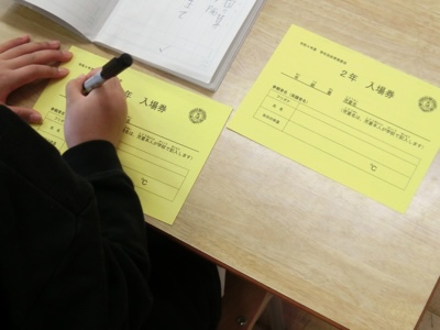 今日は、体育発表会の入場券を配布しました。これは2-3です。