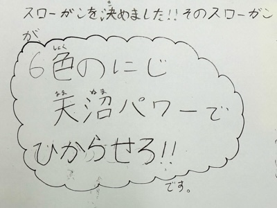 代表委員会で選ばれた、体育発表会のスローガンは「6色のにじ 天沼パワーでひからせろ!」です。11月12日をお楽しみに。