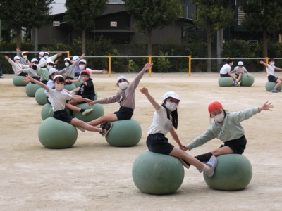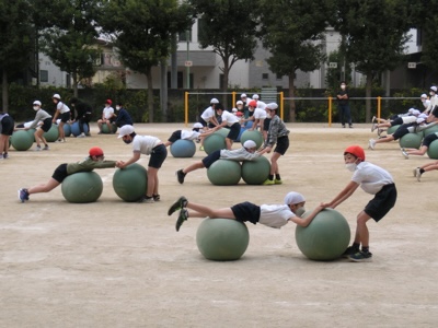 4年生のGボールを使った表現運動の練習も大詰めです。