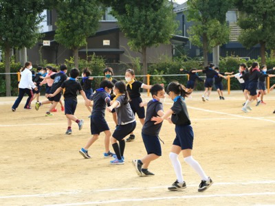 子どもたちが考えた動きが入り、休み時間に遊んでいるような場面もあります。