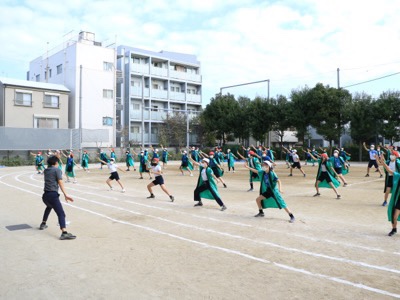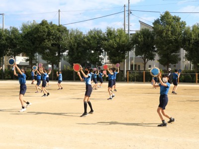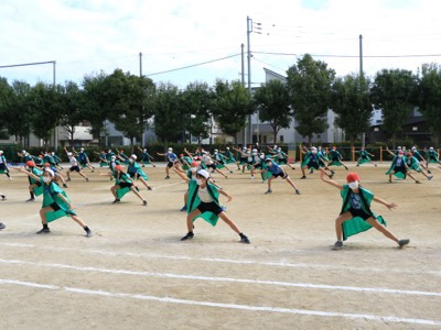 体育発表会当日まであと3日。練習も本番同様になってきました。3年生の表現運動です。