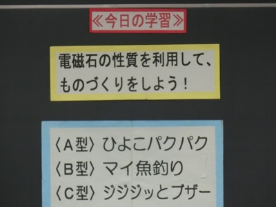 今日の内容は、電磁石の学習で学んだ性質を生かして、ものづくりをする活動です。