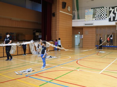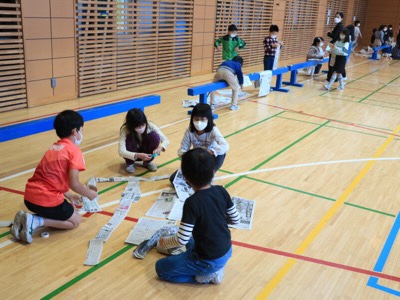 2-4で教育実習をしている小山先生の研究授業がありました。アリーナでの図工の授業です。
