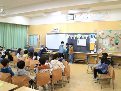 今日は「お楽しみ会」をするクラスがたくさんありました。これは2-4です。