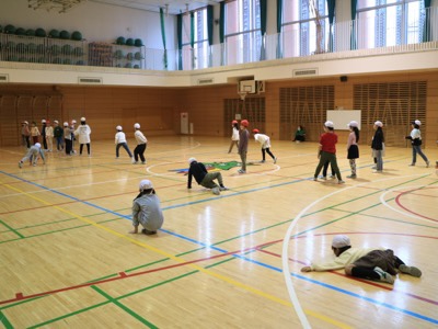 アリーナでも、2-2がお楽しみ会的な活動をしていました。みんなで「だるまさんがころんだ」をして楽しんでいます。