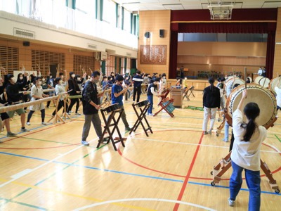 6年生は天沼伝の太鼓の練習をしていました。