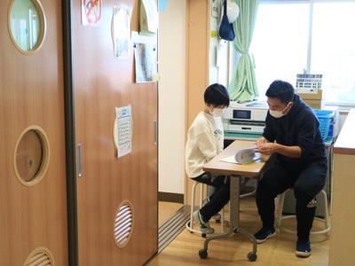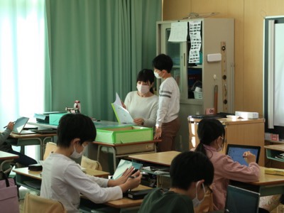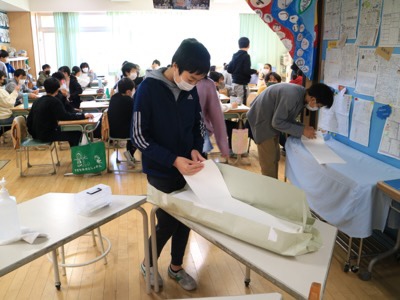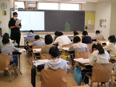 最終日は、宿題やお手紙など配るものがたくさんあります。1-1では、配られたものを確認しながら封筒に入れていました。