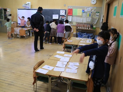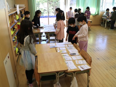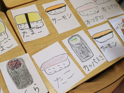 1-3は国語の授業で「もののなまえ」と「おみせやさんごっこ」という単元の学習を合わせた活動をしていました。
