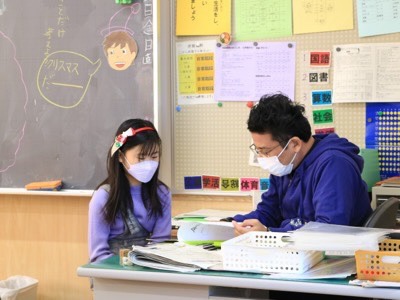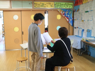 学期の終わりに渡されるものといえば「通知表」です。各クラス、担任の先生がそれぞれのスタイルで、一人一人に話をしながら通知表を渡します。それでは、各クラスの様子を一気にご覧ください。