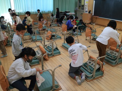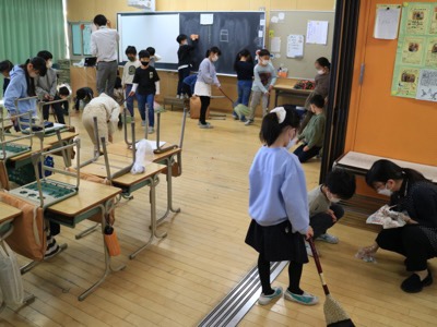 最後は大掃除です。普段はやらない机の脚の裏もきれいにしているのは1-2です。