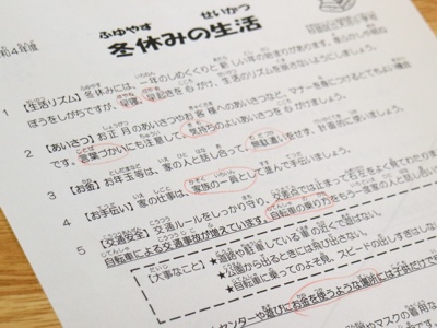 このプリントをよく読んで、健康で事故や事件に遭わないように気をつけて過ごしてください。