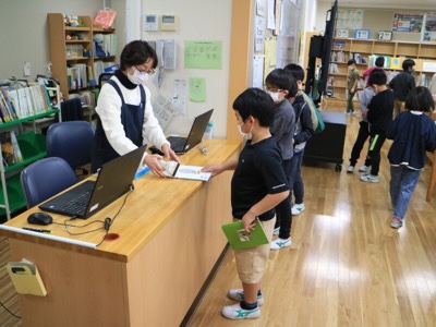 このような新しく明るい図書館で、子どもたちは本を選び、借りたり返したりしながら、読書に親しんでいます。