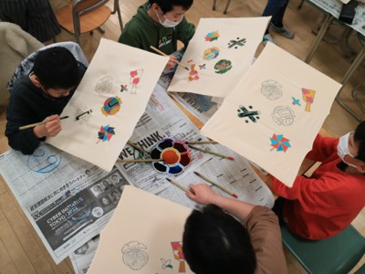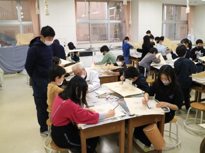 今日は伝統文化理解教育の一つとして、4年生が手描き友禅に取り組みました。