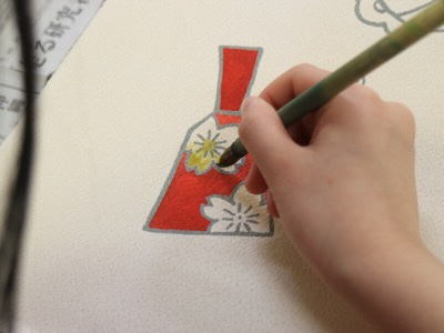 布に描かれた模様に、塗り絵のように色を付けていきます。