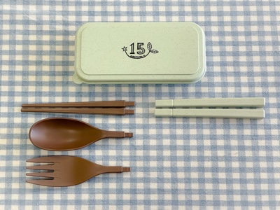 杉並区から子どもたちへの記念品として予算が配当されたので、エコカトラリーセットを発注しました。箸とスプーンフォークを付け替えて使えます。