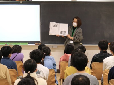 本を読まずに語る「おはなし(素話)」と、絵本の読み聞かせをしてもらいました。子どもたちは集中してお話を聞いていました。