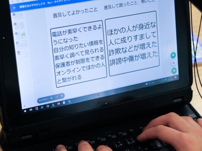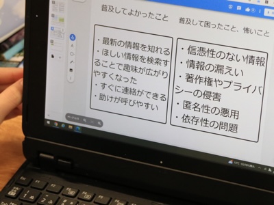 普及してよかったことと、普及して困ったことや怖いことをタブレットでまとめています。