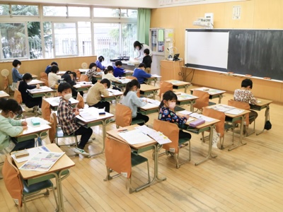 1-2の教室です。インフルエンザによる欠席者が多く、空席が目立ちます。残念ながら明日2月8日から2月10日まで学級閉鎖をすることになりました。体調を整えて、来週は元気に登校できるといいですね。