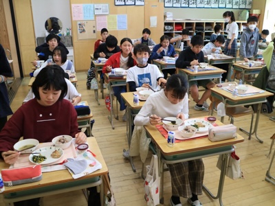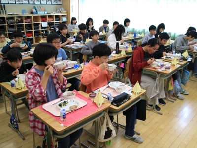 6-2です。6年生は「小学校最後の給食」をしみじみと食べています。