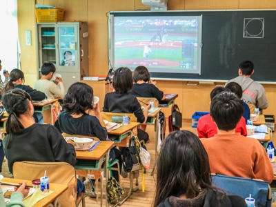 6-1は、WBCのハイライトを観ながらの最後の給食です。侍JAPAN優勝おめでとう!
