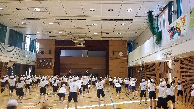 6年生がアリーナで、体育発表会に向けて練習に取り組んでいました。それを中心になって進めているのは、実行委員の子どもたち。御神楽が豊作祈願の踊りであることや、手に持つ道具のこと、振付について、詳しく話をしながら上手に進めていました。さすが6年生です。
