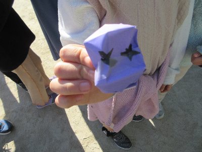 本物には、写真にあるように星が書かれています。星の書かれていない、にせ物もたくさんあります。たてわり班で手をつなぎ、一生懸命探し楽しく活動する姿が見られました。