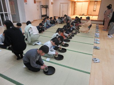 昨日は今年度最後の茶道体験に、1年生が挑戦しました。天沼小では、日本の伝統文化・理解教育として茶道教室を全学年体験しています。