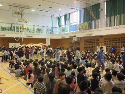 6年生からのお礼の出し物は、最高学年に代々引き継がれる「天沼伝」、力強い太鼓の発表でした。この後たてわり班でも集まり、これまでお世話になった6年生に感謝の気持ちを伝え、会を閉じました。
