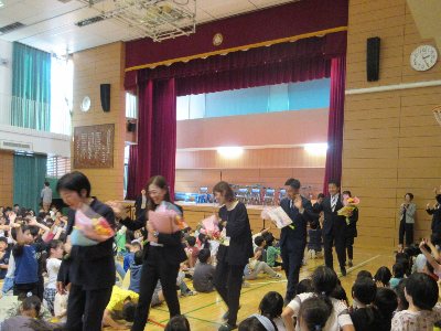 最後は子どもたちの大きな拍手の中、間を歩き退場となりました。皆さん、新天地でご活躍下さい。