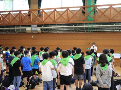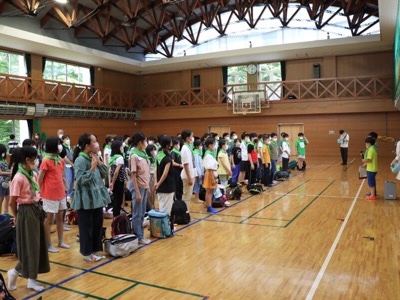 ほぼ予定通りの時刻に富士学園に到着しました。体育館で開園式を行います。