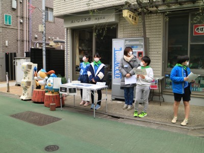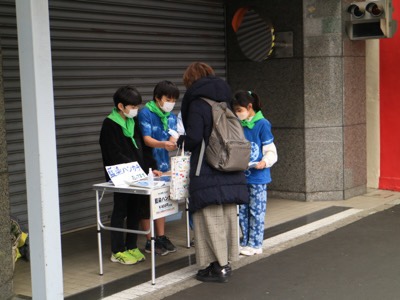 5年生の「天沼会社経営プロジェクト(AKP)」の販売2日目。今日が最終日です。一昨日と同じ荻窪駅周辺と商店街の10か所で販売しました。
