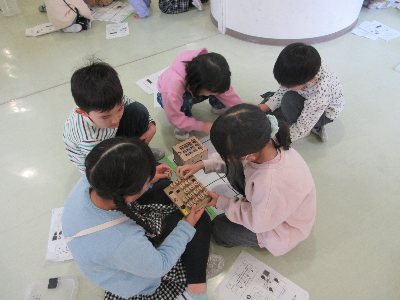 考え工夫して、車型の教材にボタンをはめ込んでいきます。楽しく協力して学ぶ姿が、教室やオープンスペースで見られました!