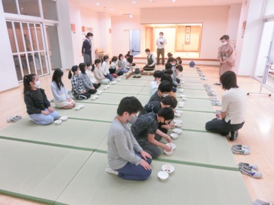 子どもたちは、お抹茶の点てかたを目の前で学びます。