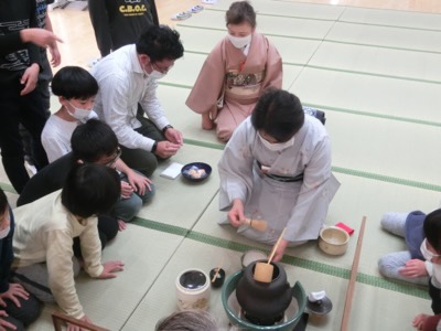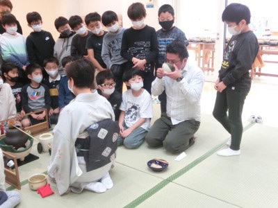 このあと、子どもたちもお菓子とお抹茶をいただきました。