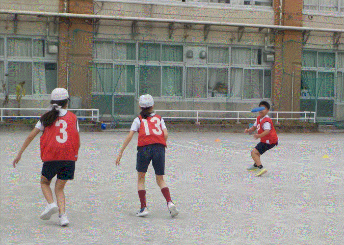 体育「ゴール型運動」としてアルティメットというフライングディスクを使った学習を始めました。