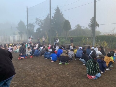 10月27日金曜日朝、山中湖村は霧に包まれています。水曜日から始まった5年生の山中湖移動教室がついに最終日を迎えました。