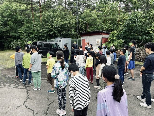 朝の会では、キャンプファイヤーで交流する予定だった学校と、学年別の輪になって「きょうからともだち」をにぎやかに踊り、心も体も温まりました。