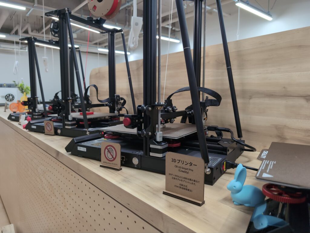 3Dプリンターは7台もあり、稼働していました。