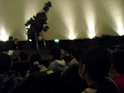はじめにプラネタリウムです。春分、夏至、秋分、冬至のときの太陽の通り道や星の動き方、今観察できる主な星座などについて学びました。