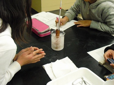 次は、「水と氷」の学習です。水が凍ったりとけたりするときの温度変化の特徴や体積の変化のしかたについて実験し学びました。