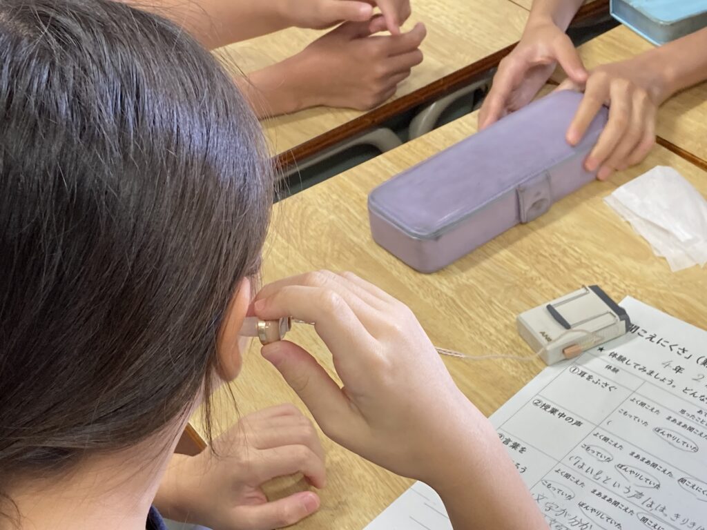 9月24日(火)けやき学級の先生による難聴理解授業がありました。難聴とはどのような聞こえにくさなのか具体的に教わったり、補聴器の体験をしたりしました。どのような特性のある人もその人らしく暮らしていける世の中になることを目指した総合的な学習の一環でした。