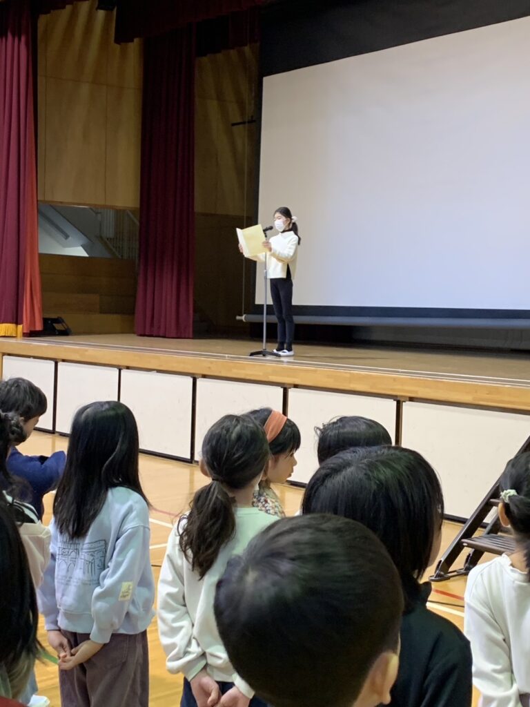 この後、児童代表による3学期の目標についての発表がありました。3学期も健康に気を付けて子どもたち全員が輝いてほしいです。