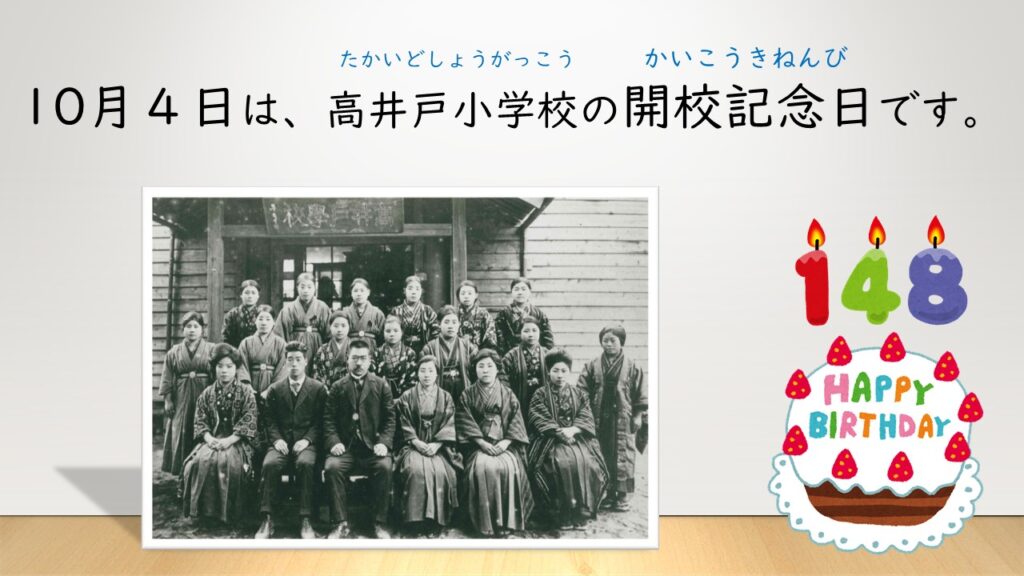 10月4日(水)は、高井戸小学校の148歳の開校記念日です。