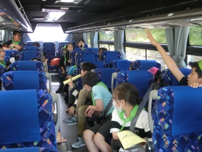 高速道路に入った途端に、1号車ではバスレクのカラオケが始まりました。みんな楽しそうに歌っています。