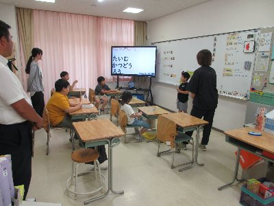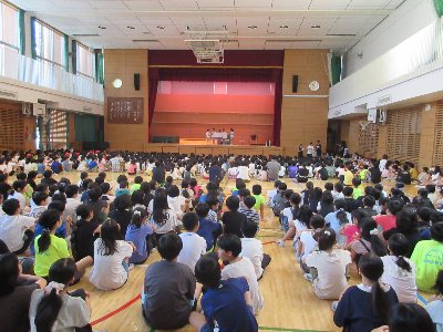2018-05-17 たてわり班活動 今日は、朝の時間に「たてわり班活動」がありました。学年をまたいで1年から6年までの子供たちでグループを構成することを「縦割り」といいます。6年生がグループをリードして活動します。 今日は「全員の名前を覚えよう!」という目当てで、サイン集めゲームをしました。班の中で、名前、学年、好きなものを聞いて、カードにサインを集めていきます。学年を超えて仲よくなれるといいですね。 Home › 学校全体 › たてわり班活動 関連記事 学校再開に向けて 色別一斉下校訓練 教育実習が始まりました 今日の授業風景 たてわり班集会 今日の学校風景 今朝の児童集会