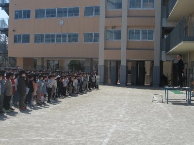 6年生は4クラスとも「宇宙」をテーマにしたお店です。だいたい教室を締め切って暗くしています。6-2の「スペースワールド」のルール説明をしています。