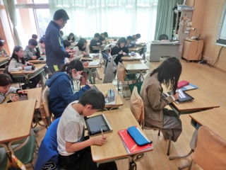 このところ視察の多い天沼小。今日は8人の国会議員の方々がいらっしゃいました。校長室でプログラミング教育の実践を説明して、タブレットで実際に体験してもらいました。