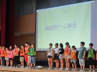 今朝は、前期集会委員会による最後の児童集会でした。題して「謎解きゲーム集会」。