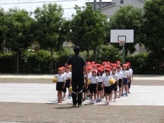 区内の若手の先生たちや、指導をしてくださる講師の先生たちが参観しています。たくさんのお客様に囲まれていますが、子供たちは落ち着いていました。