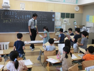 学期のはじめには身体計測をするのですが、その前に養護教諭の上農先生から保健指導があります。今日は2年生が計測しました。